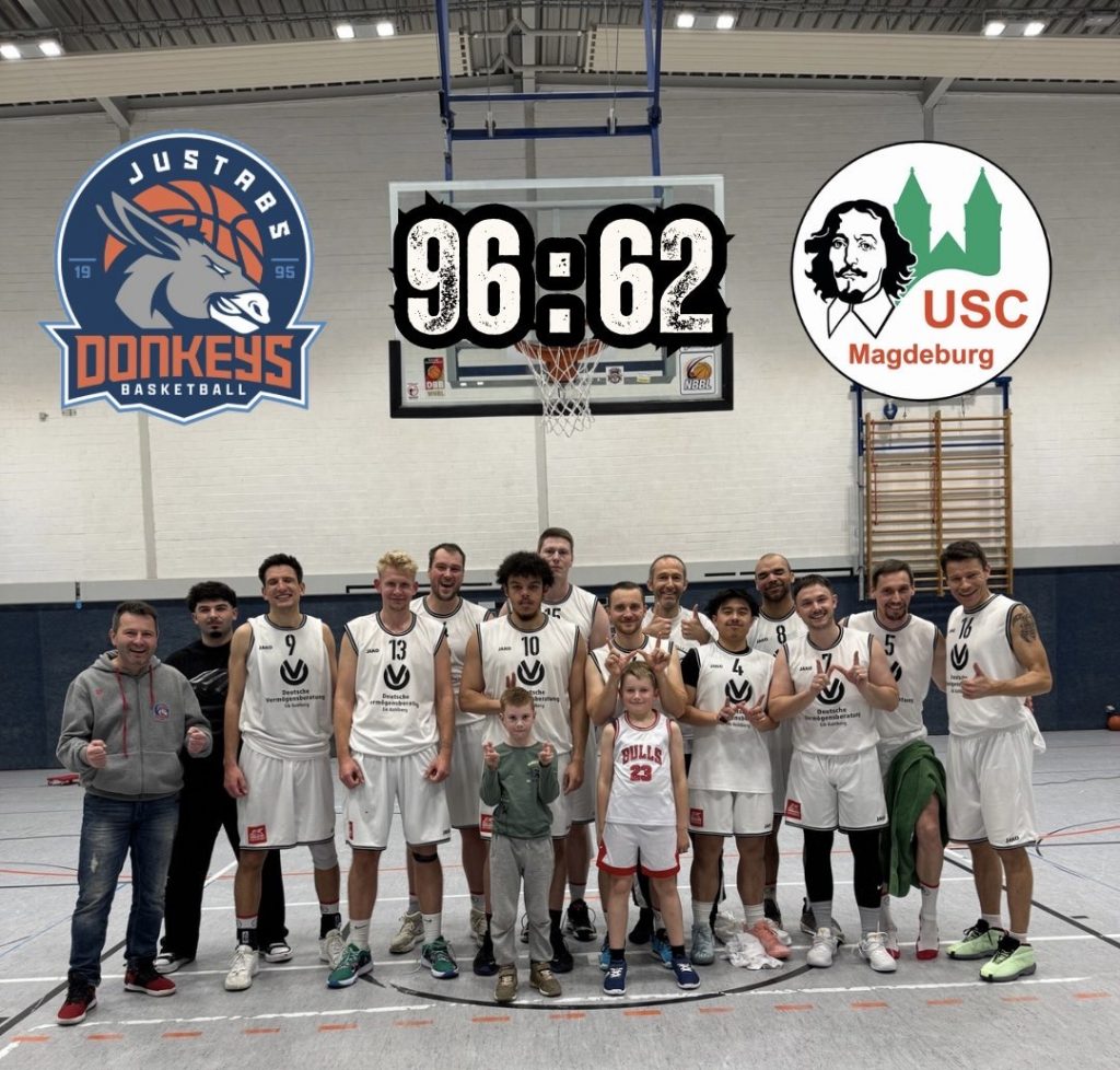 Der zweite Sieg ist im Trog – 96:62 gegen Magdeburg. Genau die Art Matchday, an dem ein Donkey zufrieden die Ohren wackeln lässt. Auch wenn wir zu Beginn einmal kräftig gestrauchelt sind: Gleich zwei unserer Jungs fingen sich Pferdeküsse ein. Gunnar Hoffmann (#5) und Richard Wache (#7) mussten runter, bevor wir überhaupt richtig die Hufe sortiert hatten. Der Start wacklig, der Rhythmus kurz weg, aber mit voller Eselstärke weitergespielt.