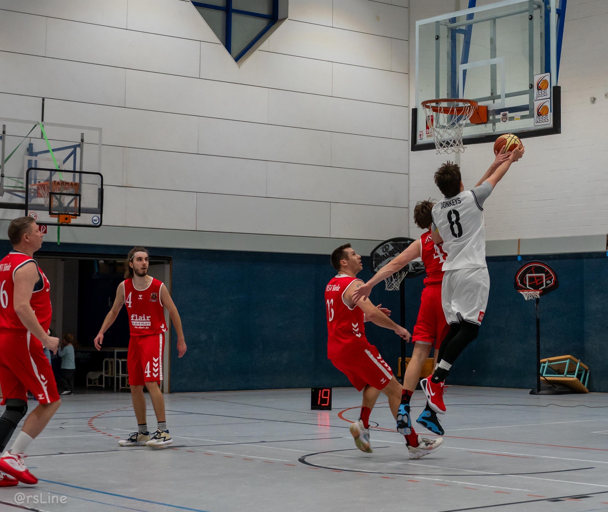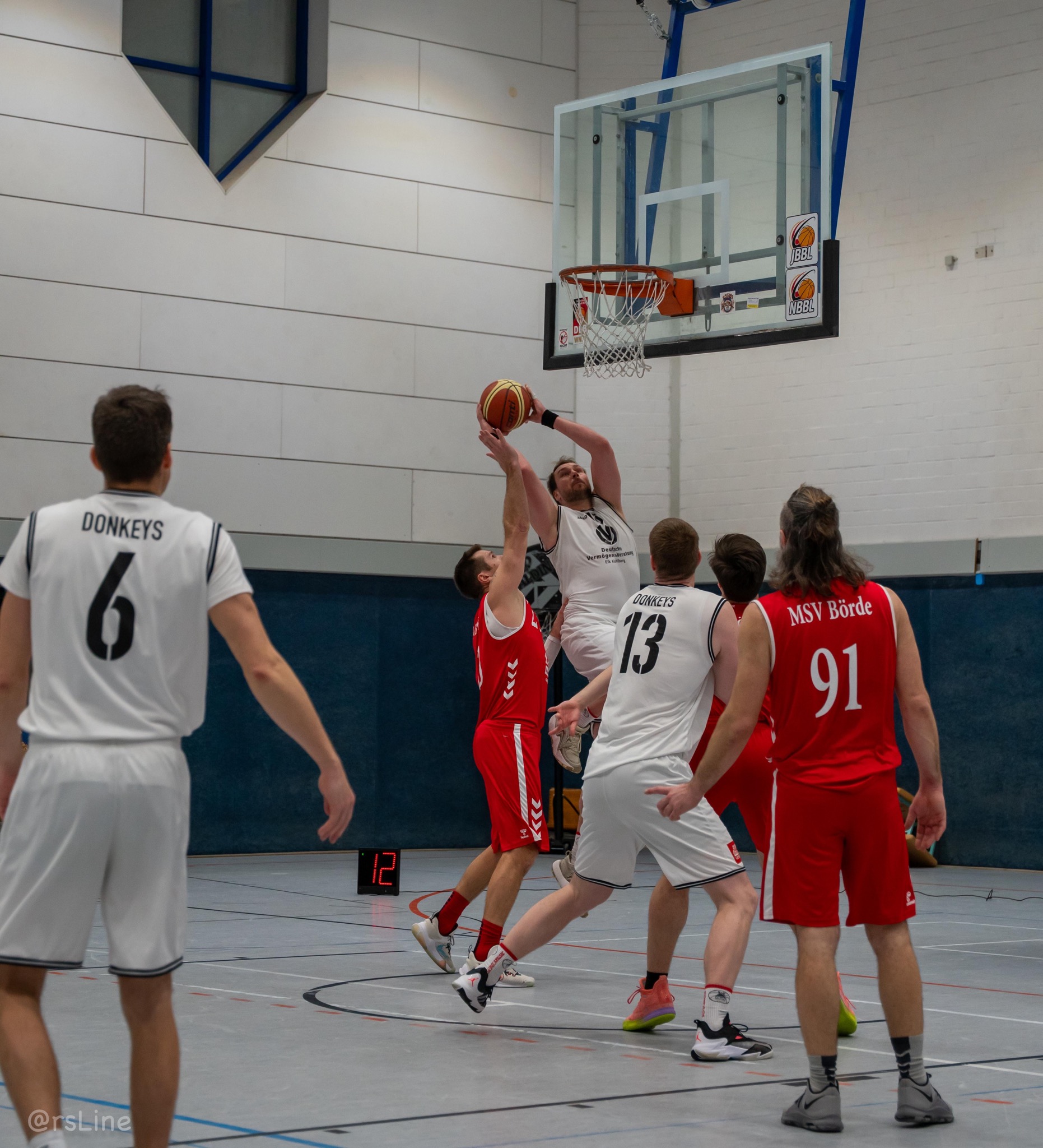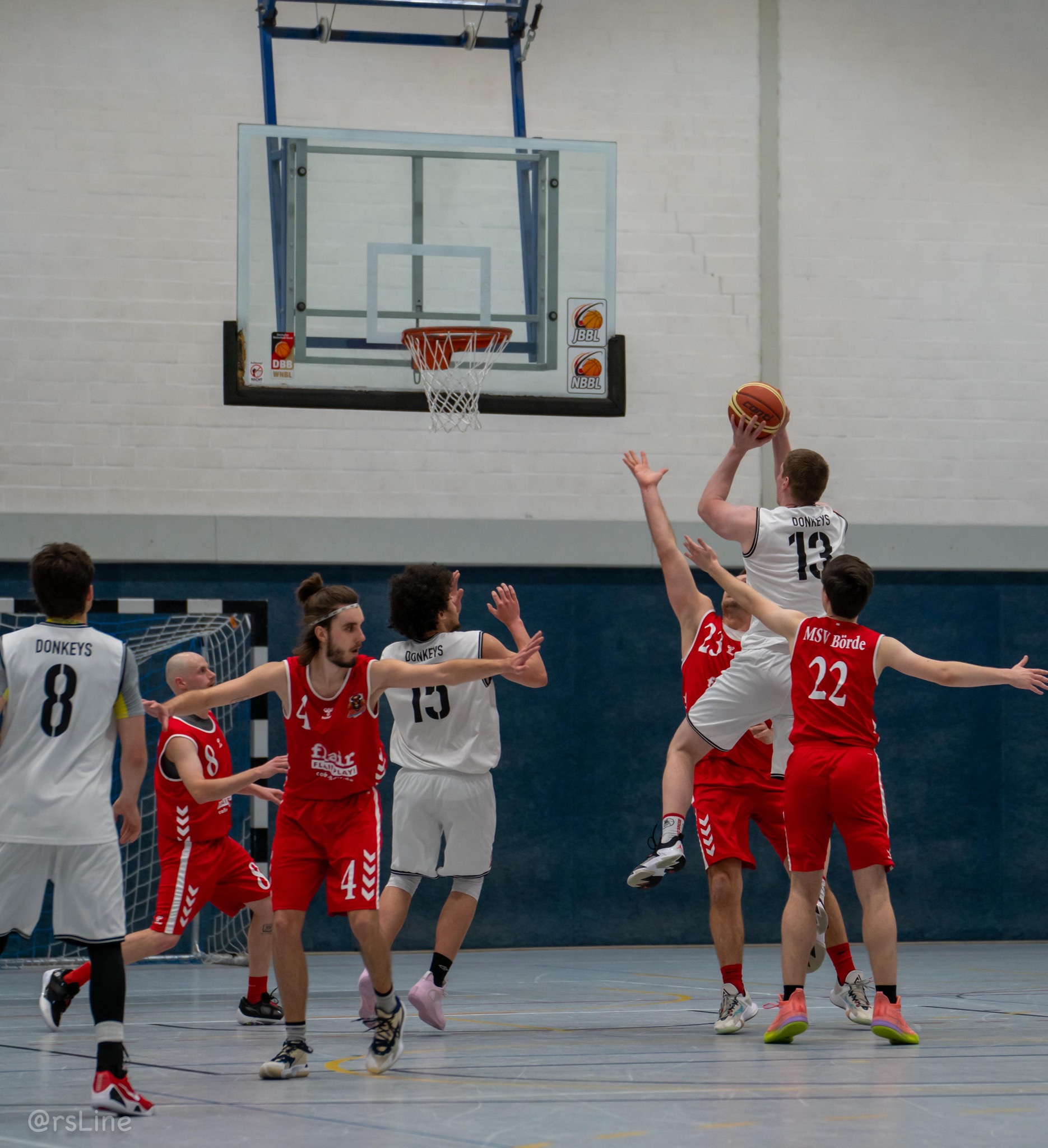 Von Beginn an war klar: Gegen die Bisons wird es kein Spaziergang. „Es war das erwartete knappe Spiel, gegen Börde ist es nie einfach zu spielen“, resümierte Coach Christian Damm nach der Partie. Das erste Viertel war ein offener Schlagabtausch, den die Donkeys hauchdünn mit 19:18 für sich entschieden. Zur Halbzeit spiegelte der Stand von 36:36 die absolute Ausgeglichenheit wider – 12 Führungswechsel und 12 Gleichstände im gesamten Spielverlauf sprechen eine deutliche Sprache.