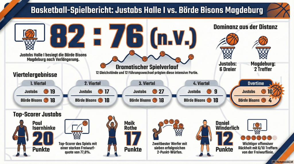 Was für ein Krimi in der Sporthalle Lettin! Die Donkeys haben sich in einem nervenaufreibenden Spiel mit 82:76 nach Verlängerung gegen die Börde Bisons aus Magdeburg durchgesetzt. Die Zuschauer in der Sporthalle Lettin wurden Zeugen eines wahrhaft denkwürdigen Basketballspiels, das alles bot, was diesen Sport ausmacht: Leidenschaft, dramatische Wendungen und ein nervenaufreibendes Finish. Maßgeblich beteiligt am Sieg waren die Fans der Donkeys, die mit gerade einmal 140 cm Körpergröße zwar die kleinsten in der Halle waren, aber die Magdeburger bei ihren Freiwürfen so sehr aus dem Konzept brachten, dass entscheidende Punkte liegen blieben.