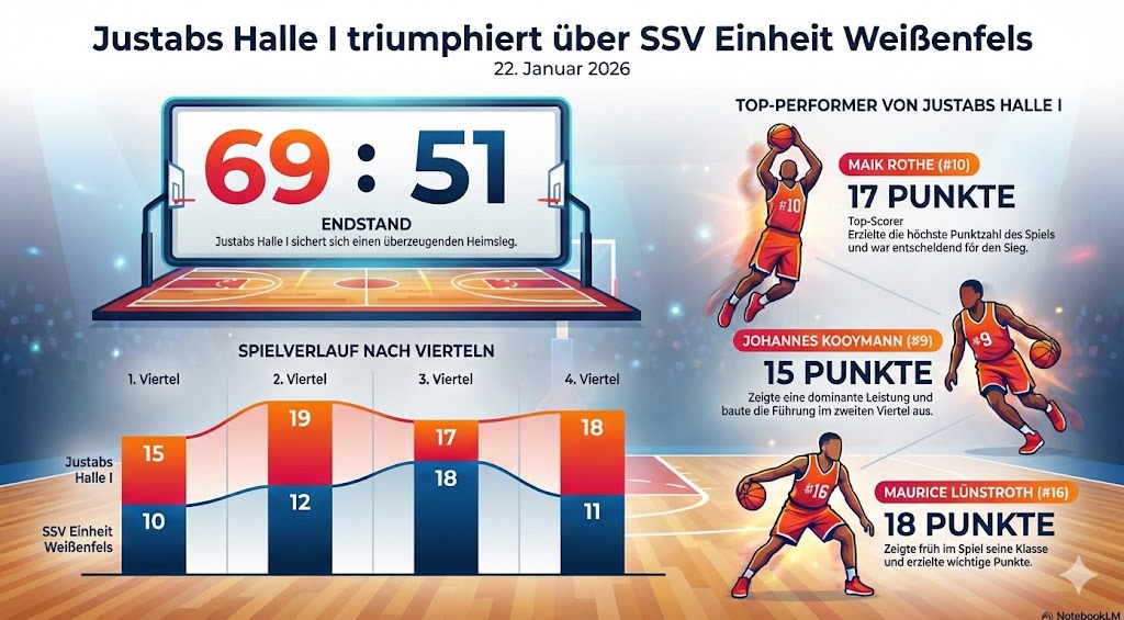 Zwar war das dritte Viertel mit 17:18 knapp zugunsten der Gäste um Dominic Huth (Weißenfels), doch wir ließen nichts anbrennen. In der Crunchtime haben wir mit einem beeindruckenden 10-0-Lauf im letzten Viertel (18:11) die Gäste aus Weißenfels überrannt.